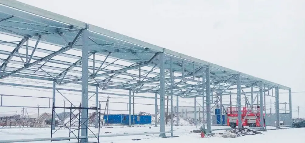 Усиленный стальной каркас рассчитан на высокие статические и динамические нагрузки, включая размещение тяжёлого складского оборудования и стеллажных систем. Срок службы превышает 50 лет. Конструкция выдерживает экстремальные климатические условия в Камышине, включая снеговые и ветровые нагрузки.